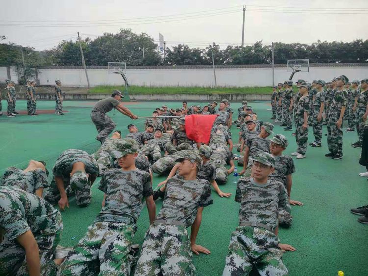 队伍集合,动作敏捷;站立军姿,满身大汗,纹丝不动;队列操练,步伐规范。