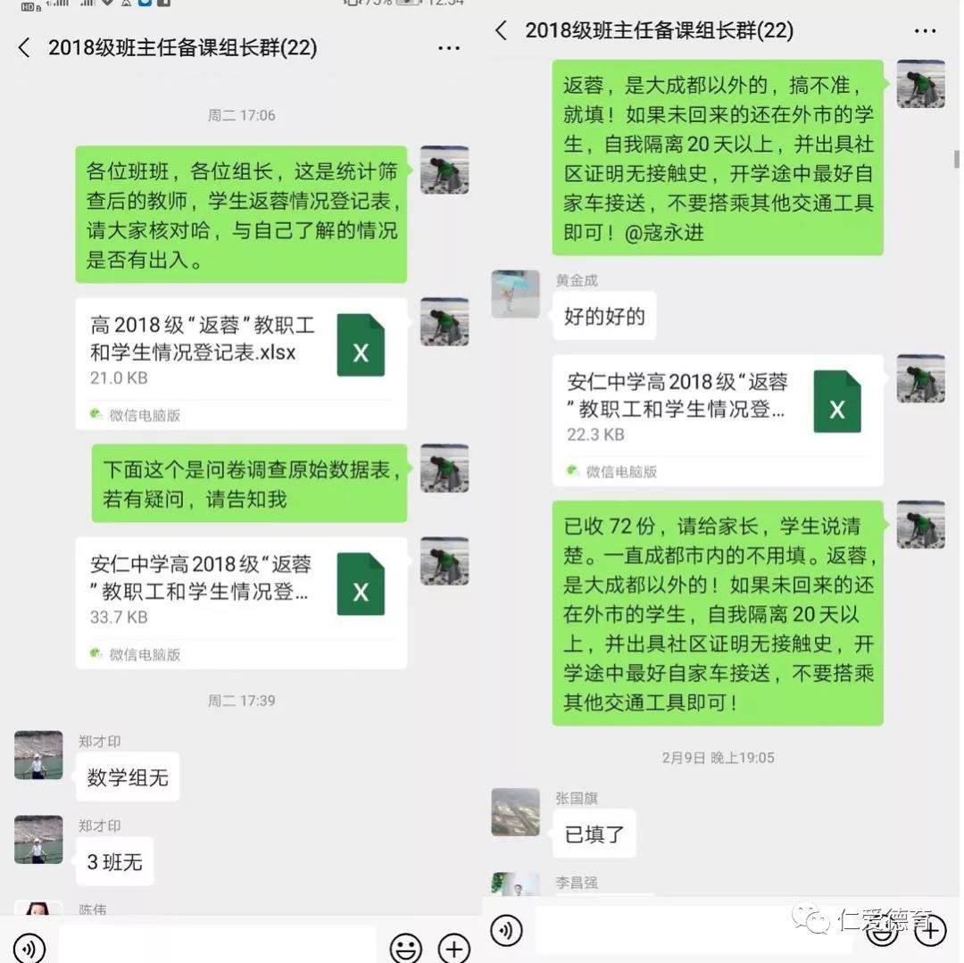 放下寒假旅游计划,立即穿梭在学校工作群、德育群、年级工作QQ、微信,班级群,指导年级班主任按班建档,询问师生有无疫区接触史、旅居史,身体状况,核实、登记、建档、上报。