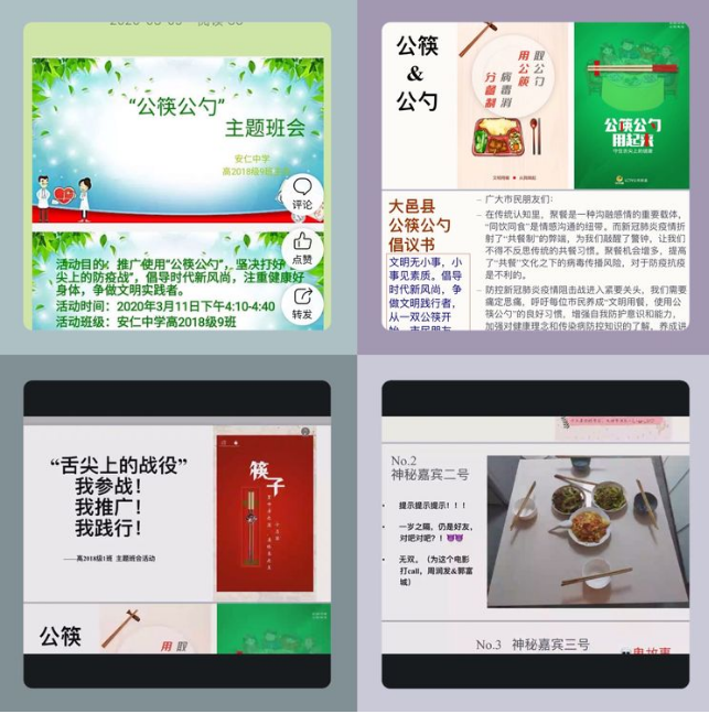 为促使广大师生践行“公筷公勺”行动,3月12日下午,安仁中学在云班会课举行了“公筷公勺,用餐有礼”线上活动。