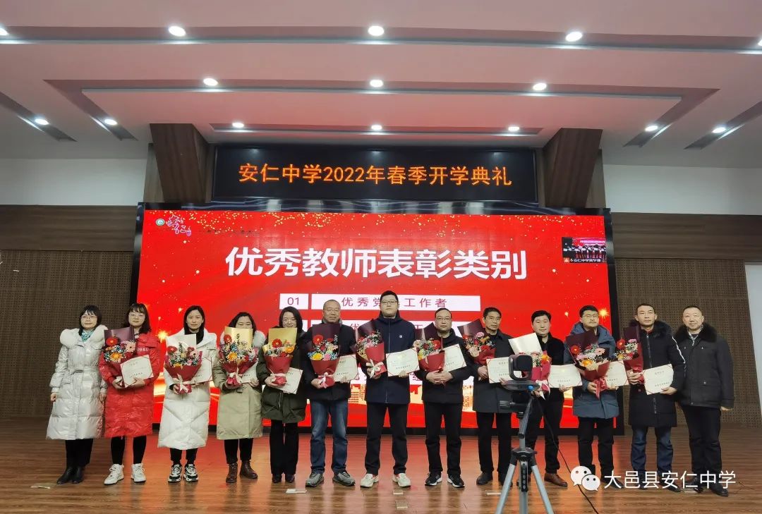 典礼上,学校对上一学期的优秀党务工作者、优秀管理干部、优秀班主任和优秀学科组长进行了表彰。新学期,全体安中人将以他们为榜样,协力奋进,再谱新篇。
