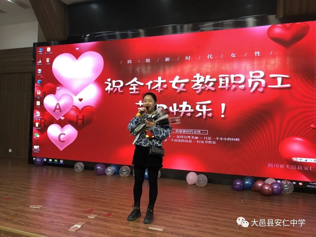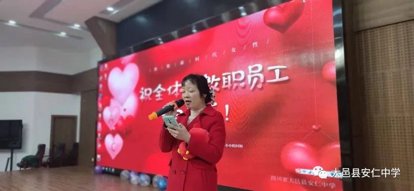 为凝聚巾帼智慧和力量,丰富女教职工的文化生活,活跃校园文化氛围,展示学校女教职工的风采,体现对女教职工的关怀与尊重,进一步增进女教职工之间的交流,促进团队和谐发展,让全体女教职工度过一个和谐、快乐、难忘而有意义的节日,3月8日,大邑县安仁中学工会在学校学术报告厅组织开展了以“逐梦新时代 巾帼绽芳华”为主题的“三.八妇女节”庆祝活动。