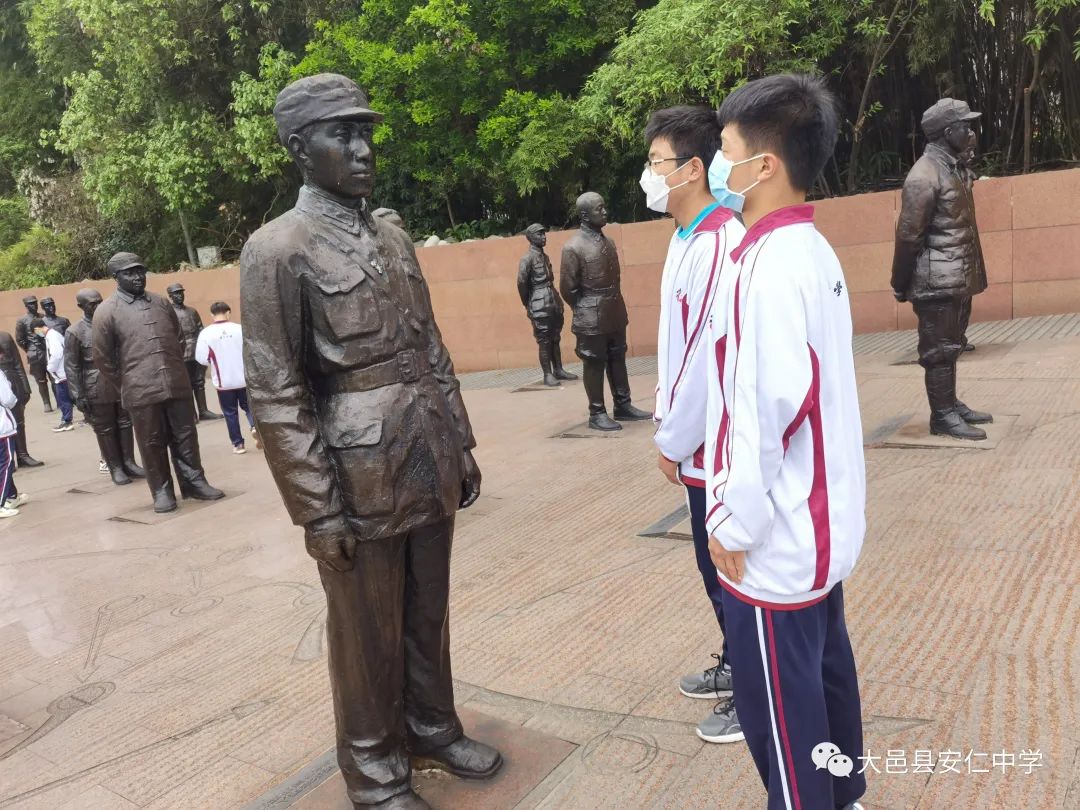 为了弘扬中华优秀传统文化,加强爱国主义教育,丰富课外实践的内容和形式,合理利用学校周边丰富的博物馆资源和红色教育资源,3月30日,在中国传统节日"清明节"即将来临之际,大邑县安仁中学部分优秀学生代表在学校党总支、教育处、校团委的带领下走进安仁建川博物馆的“中国壮士群雕广场”和“援华义士广场”开展“缅怀革命先烈,传承革命精神”清明祭奠活动。
