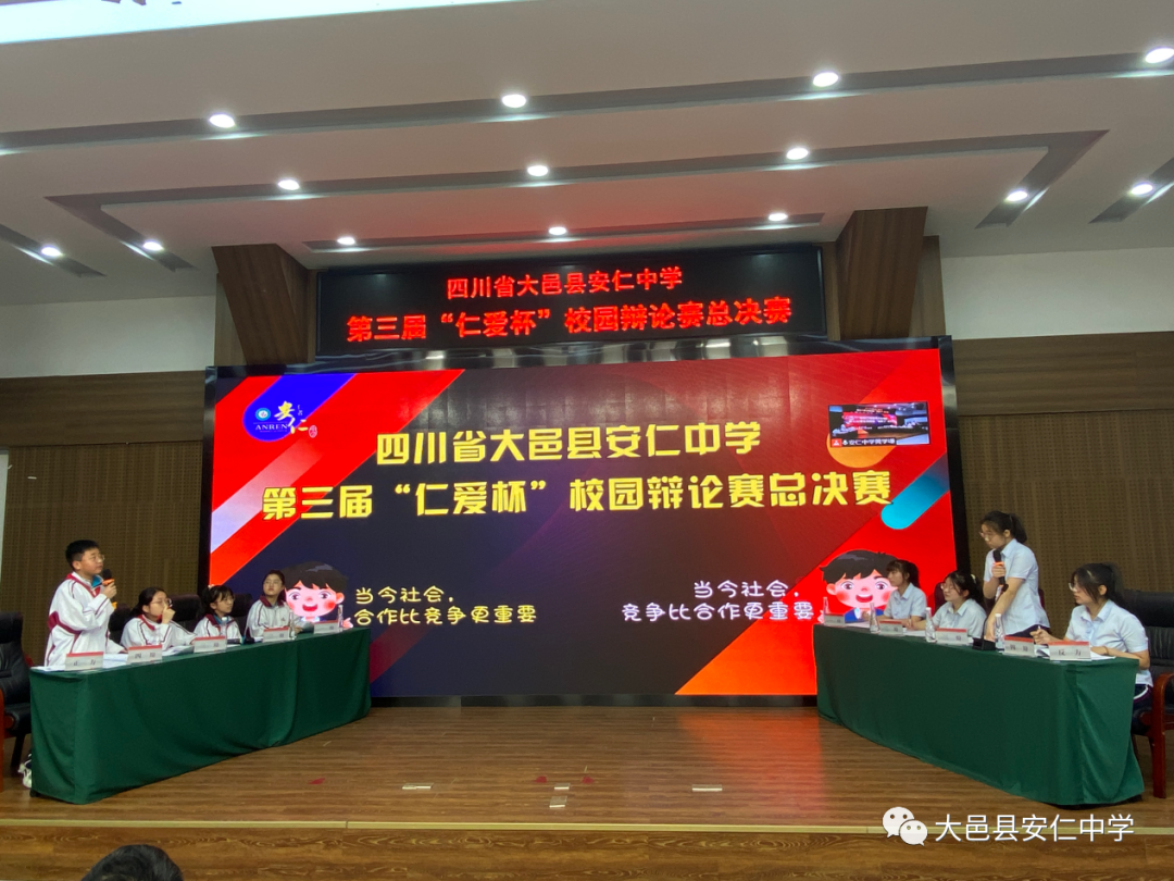 为了应对未来教育的挑战,培养学生科学学习能力、批判思维能力、创新精神,提升学生的辩论水平、语言组织表达能力、逻辑思维能力和团队协作能力,丰富学生的课余生活,营造积极向上、格调高雅、健康文明的校园文化氛围,全面展示学校师生团结创新、锐意进取、蓬勃向上的精神风貌,4月13日,大邑县安仁中学第三届“仁爱杯”校园辩论赛总决赛在学校学术报告厅隆重举行。