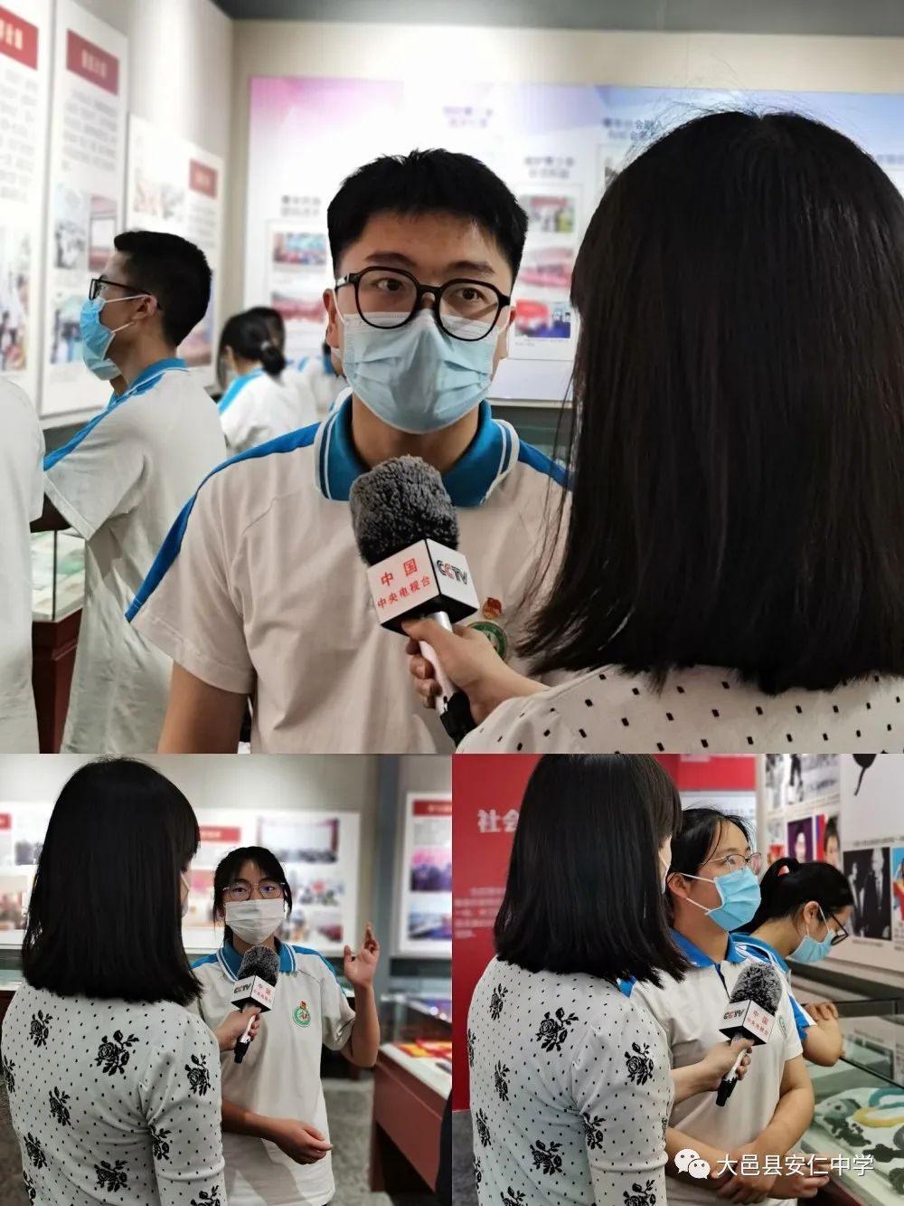 中央电视台记者对安中学子进行了采访。采访中,受访同学们纷纷表示:“参观百年团史馆,让我们看到了中国青年在“抗击疫情”、“希望工程”、“体育竞技”等方面成为祖国发展的中坚力量,勇立时代潮头的英姿,作为新时代青年,我们生逢其时,重任在肩,定当坚定不移听党的话,立青云志向,续中华精神,披荆斩棘,砥砺前行,努力做好中国青年的新标签,新风范,用心底汹涌不止的青春热血,凝聚冲破天际势不可挡的青年力量,乘风破浪,奋进新征程,建功新时代。”