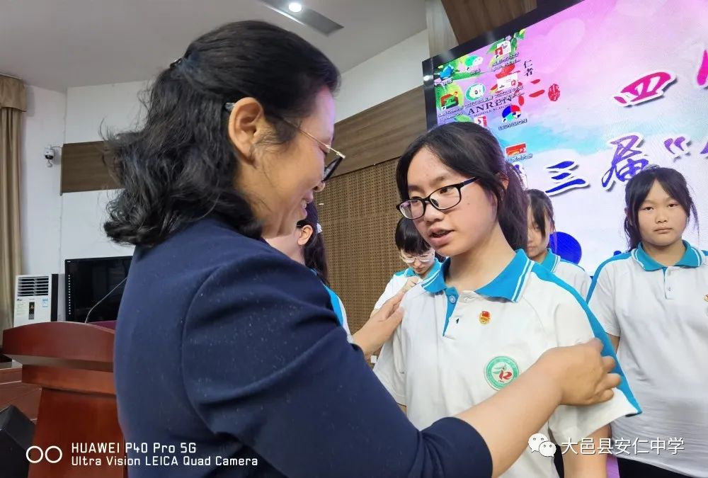 入队、入团、入党,是青年追求政治进步的“人生三部曲”,一直以来,安仁中学校团委“着力推动党、团、队育人链条相衔接、相贯通”,并激励新团员严格要求自己,牢记责任与使命,做一个合格的共青团员。在共青团成团100周年的日子里,全校各年级共计39名优秀青少年光荣地加入团组织,这39名新团员通过学习团史、学习团章、团校结业考试等综合考察,从入团积极分子中脱颖而出,正式成为了光荣的共青团员,用他们的青春力量,为安仁中学团组织输入了新鲜血液,注入了新的活力,践行“强国有我”的铮铮誓言。学校党总支领导郑重地为新团员们戴上团徽,并颁发了团员证书。