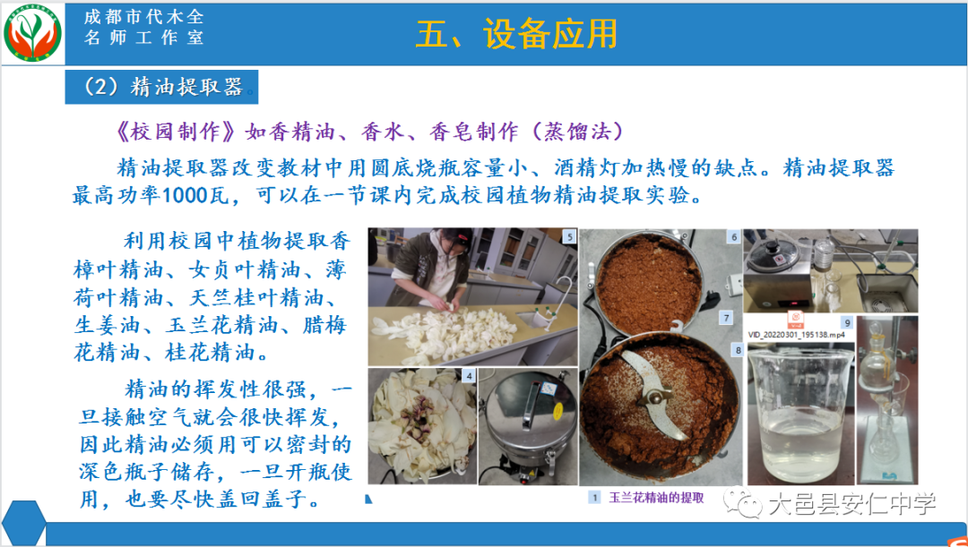 成都市名师工作室领衔人、成都市特级教师、大邑县安仁中学高级教师代木全老师作了题为《高中生物实验室设备的科学使用策略探究》的专题讲座,代老师从研究背景、研究意义、实验室主要设备、使用策略、设备应用举例、思考与建议等六方面阐述,为教师们提供了高中生物实验室设备的科学使用策略,进一步增强了教师们使用实验室设备和研究生物学实验教学的动力,达成了在教师的带领下,充分利用学校现有实验室设备激发学生学习兴趣,提高学生实践创新能力的目的。