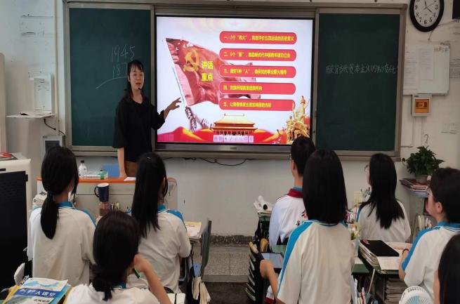 学生们积极讨论交流,从思政小课堂,到社会大课堂,把现实生活变成思政课的丰富源泉,课堂氛围轻松、活泼、进取。学生们纷纷表示,一定好好学习知识和本领,把红色基因传承好,努力成为德智体美劳全面发展的社会主义建设者和接班人,书写好新时代的青春答卷。
