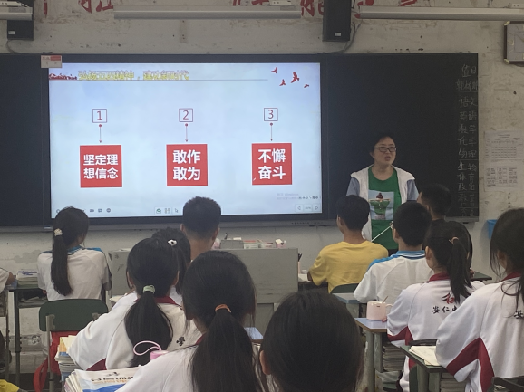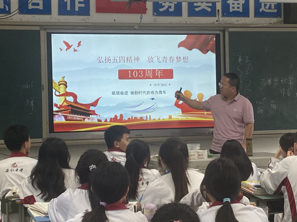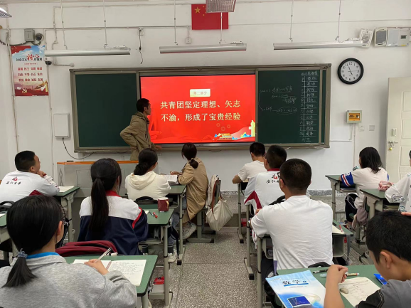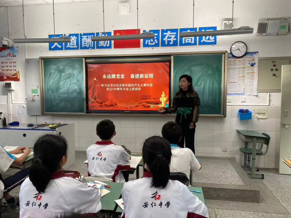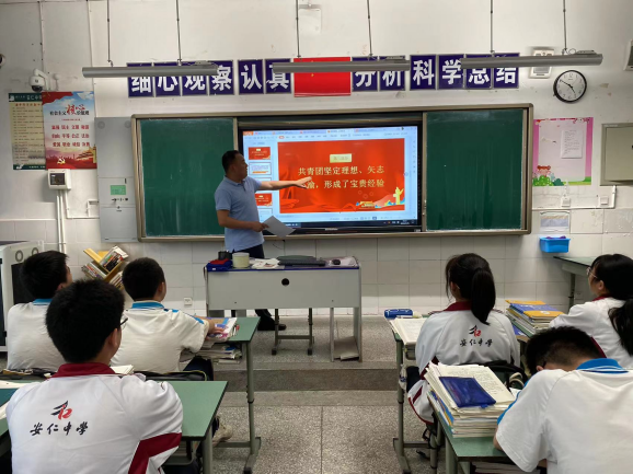 今年4月,安仁中学面向全校党员教师选拔聘任班级思政辅导员。5月,安仁中学党总支围绕学习“习近平总书记在庆祝中国共产主义青年团成立100周年大会上的讲话”和“习近平总书记在纪念五.四运动100周年大会上重要讲话”两个主题,组织班级思政辅导员走进各班课堂开展思政课教育活动。