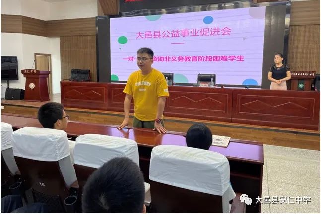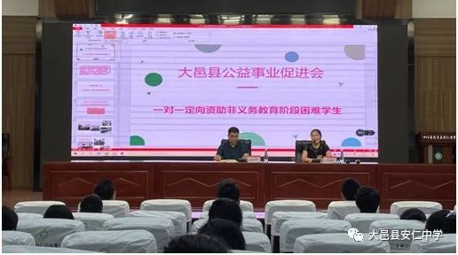 活动伊始,大邑县公益事业促进会和企业家协会秘书长任艳梅给大家详细介绍了协会相关资助情况,并带来了大邑县各企业家们对学校困难学生的关爱。任秘书长鼓励受助学子要树立信心,克服困难,好好学习,将来学业有成,回报社会,将爱心传递下去。