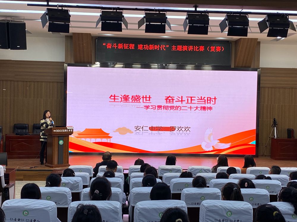 新征程催人奋进,新时代续写华章。为全面深入学习宣传贯彻党的二十大精神,激励党员教师踔厉奋发、勇毅前行,唱响奋进主旋律,3月6日下午,大邑县教育系统党工委组织的“奋进新征程 建功新时代”主题演讲复赛第一组在安仁中学学术报告厅举行。
