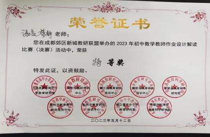 为进一步落实新课程标准,践行新课程理念,深入落实“五项管理”之作业管理,提升郊区新城教研联盟各成员单位初中数学学科教师的专业技能,成都郊区新城教研联盟举办了2023年初中数学教师作业设计比赛活动。