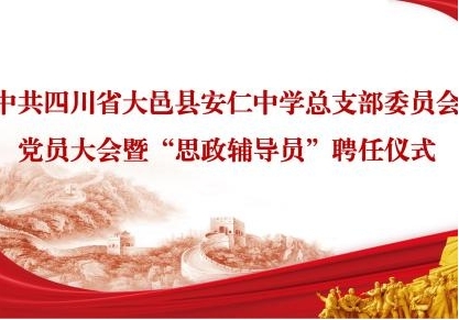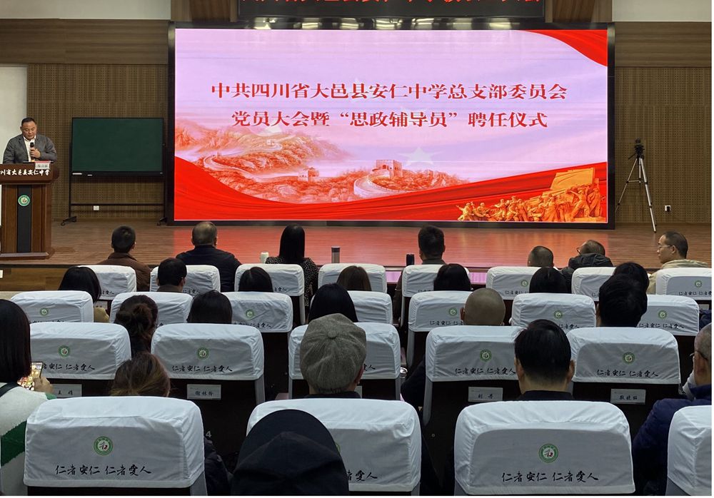 为紧紧围绕贯彻党的二十大精神,培养德智体美劳全面发展的社会主义建设者和接班人,进一步改进和加强学校思想政治工作的方式和力度,推进学校党建工作进一步创新创优,2023年11月27日下午,大邑县安仁中学党总支组织全体党员召开党员大会,隆重举行了党员“思政辅导员”聘任仪式。